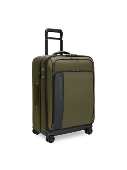 The Medium Expandable Spinner in Hunter Green by Briggs & Riley offers effortless travel with four spinner wheels, a retractable