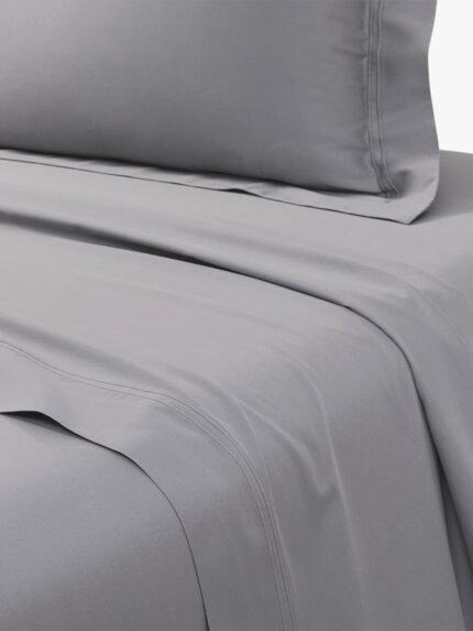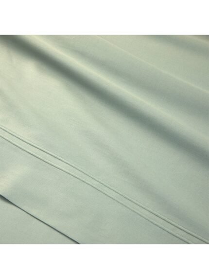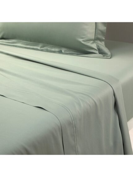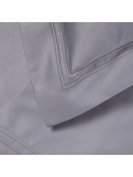 A traditional flat sheet in a plain solid colour, framed by a tone-on-tone double saddle stitch. Made in 100% organic