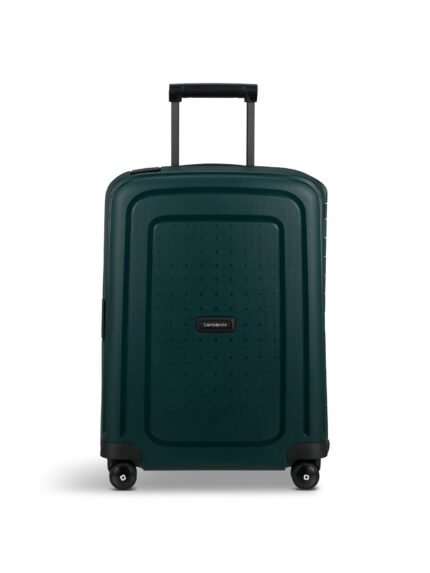 The Scure Spinner Suitcase in Dark Teal, measuring 55cm, offers durable protection with its hard case design. Equipped with smooth