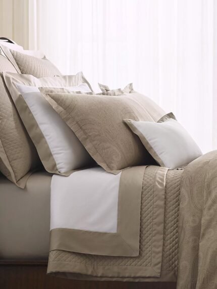 A chic Oxford pillowcase that combines the bohemian feel of a paisley print and the sophistication of a monochrome design.
