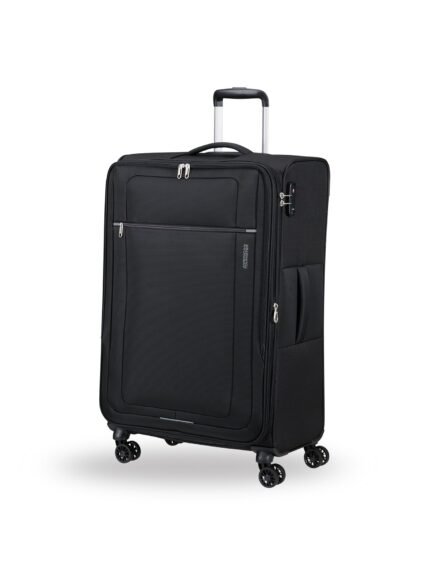 The Spinner Large Suitcase by American Tourister provides generous packing space for extended journeys. Its TSA-compatible lock supports secure, efficient