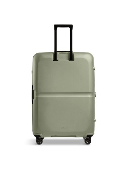 The Antler Single Stripe Spin Suitcase 81CM is designed for long trips, offering a large, lightweight, and durable hard side