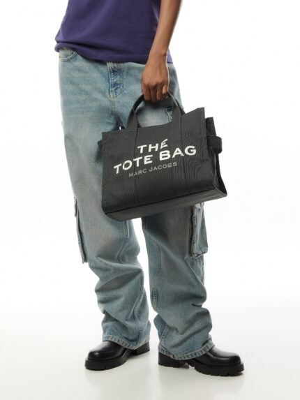 An iconic Marc Jacobs silhouette, this zip-top small tote in premium structured denim features signature embroidered namesake branding, an elevated