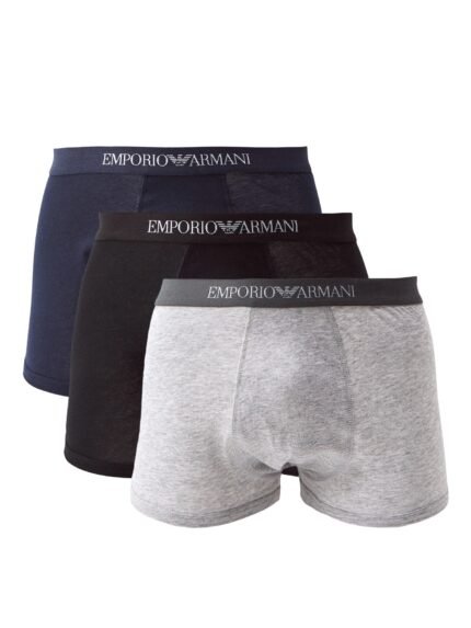 Three pack of stretch cotton boxer trunks. Elasticated waistband with logo.