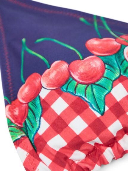 Upgrade your holiday look with our Triangle Bikini Top in custom cherry pie print. Designed with removable padded cups, and