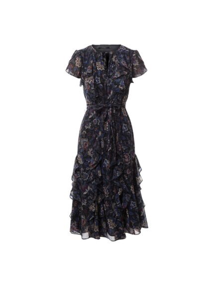 Undeniably romantic, this tie-neck dress is designed with tulip sleeves and the season’s floral motif realised in shades of red,