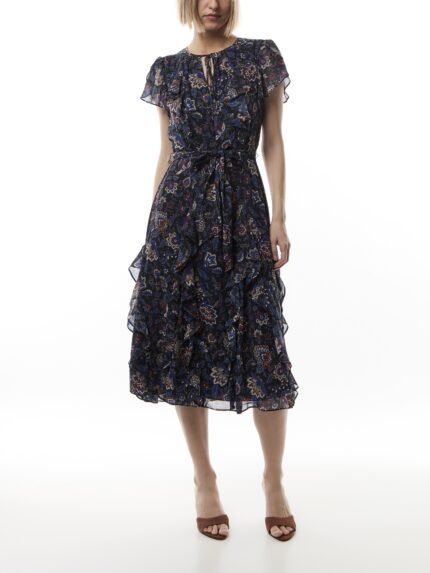 Floral Ruffle-Trim Georgette Dress