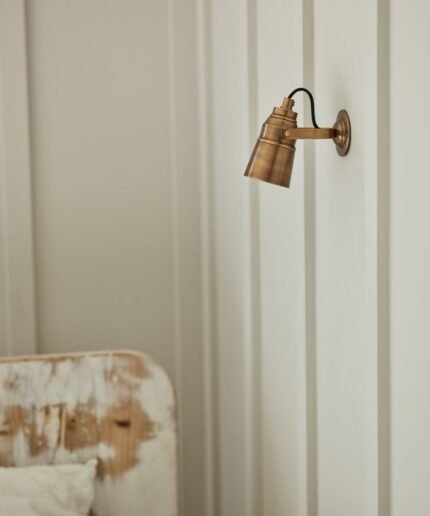 – An elegantly detailed brass wall light– Crafted from brass with an antiqued finish– Delicate step on the sconce –