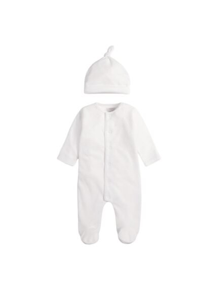 Your little one will be as light as a cloud when they feel our Velour Cloud All-in-One with Hat. The