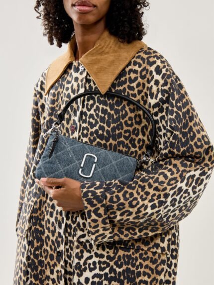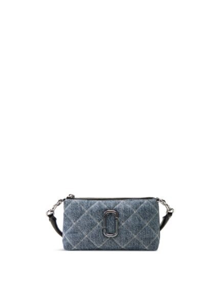 The Quilted Denim Pochette in Light Wash Indigo by Marc Jacobs features a soft quilted design with a compact shape.