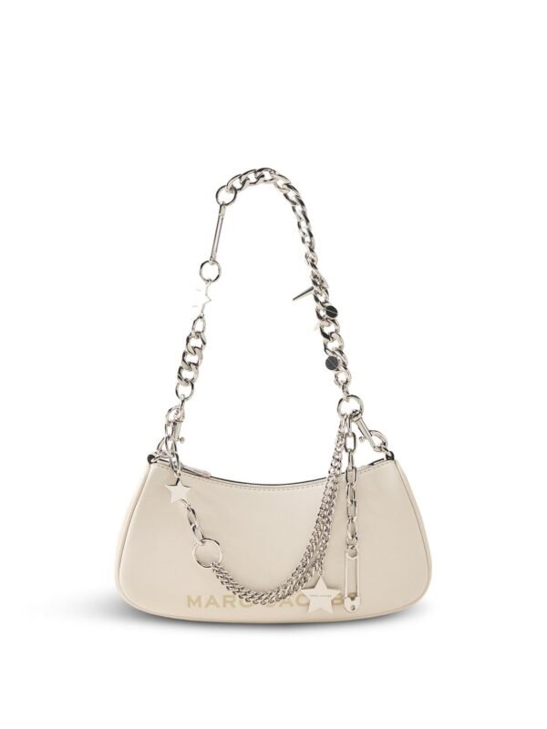 The Charm Shoulder Bag by Marc Jacobs reimagines everyday luxury in smooth cream leather. Compact yet spacious enough for essentials,
