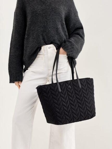 Stevie Quilted Top Zip Tote Black