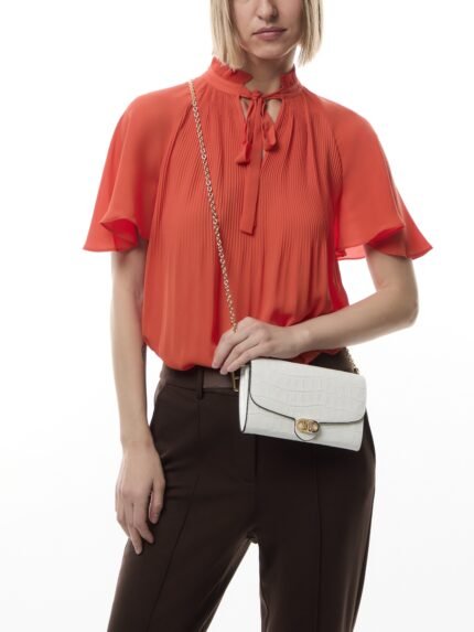 Crafted with supple full-grain leather, distinguished by its naturally smooth finish and embellished with a modern chain strap, the medium