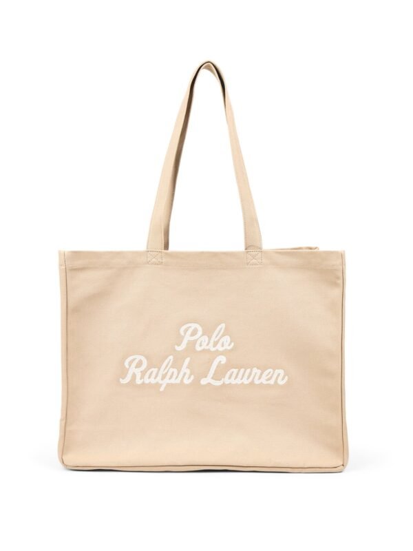 Crafted with durable cotton canvas, this spacious tote is distinguished by Ralph Lauren’s signature chain-stitched script logo embroidery.