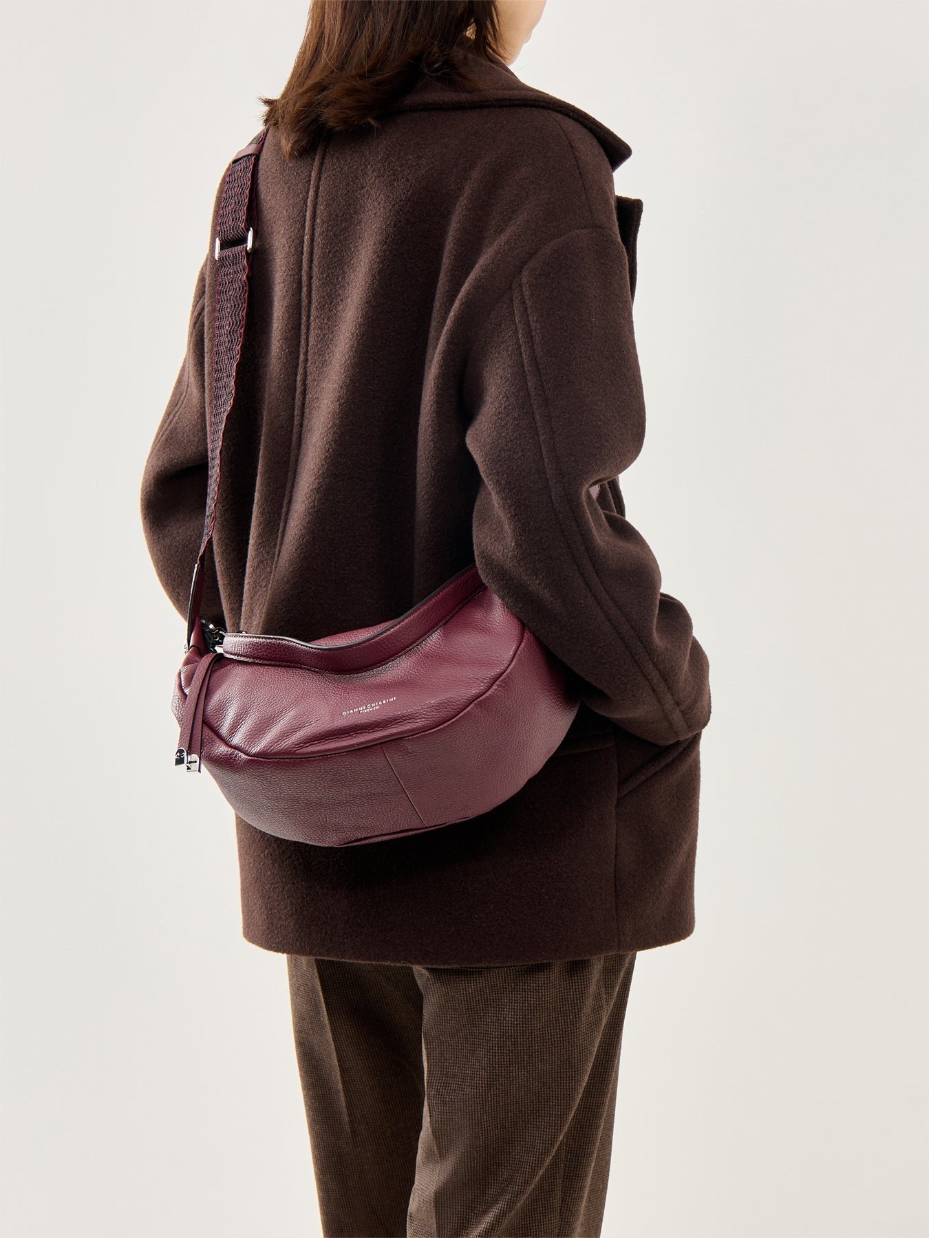 Gianni Chiarini’s Aisha Crescent Crossbody bag delivers contemporary shape with everyday function. Compact and chic, it transitions seamlessly from daywear to evening, embodying Italian elegance in a modern silhouette.