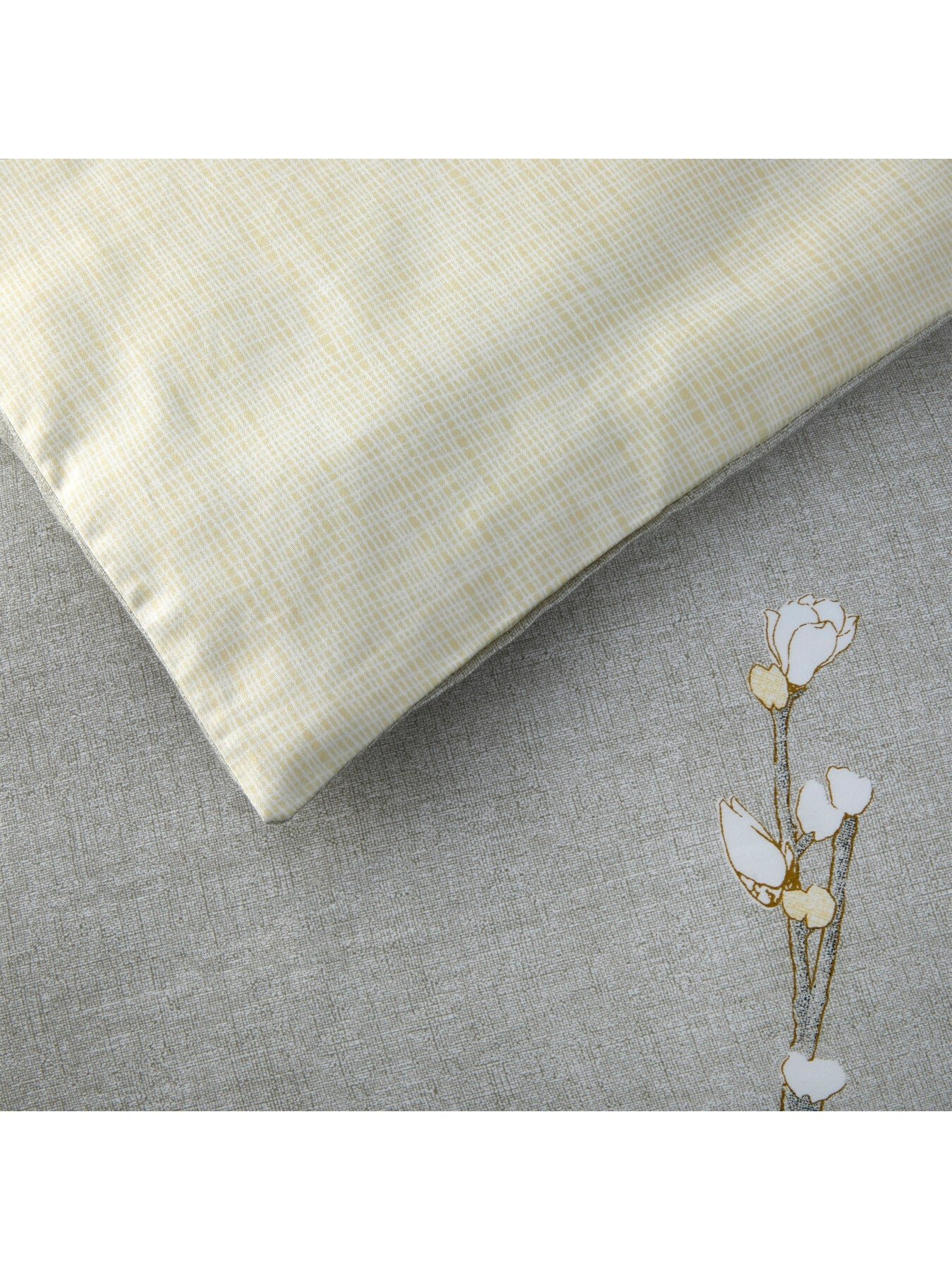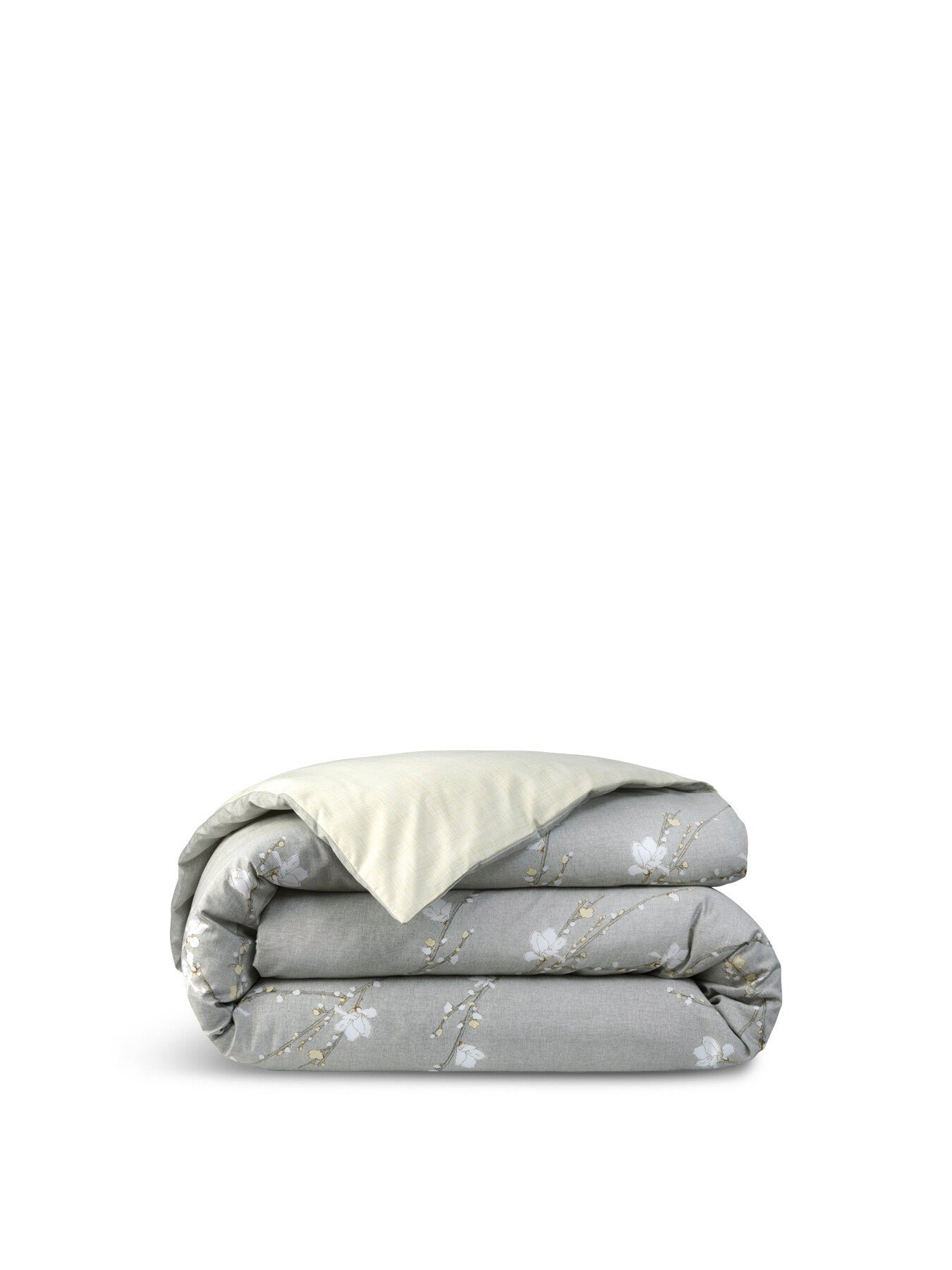A delicate duvet cover in a feminine design of needle-drawn flowering tree branches atop a stormy grey backdrop with a textured effect. This is mirrored on the reverse side of the cover as the same textured effect is seen here, only crafted in a beige tone. The cotton sateen design is finished with modern and convenient zip closure.