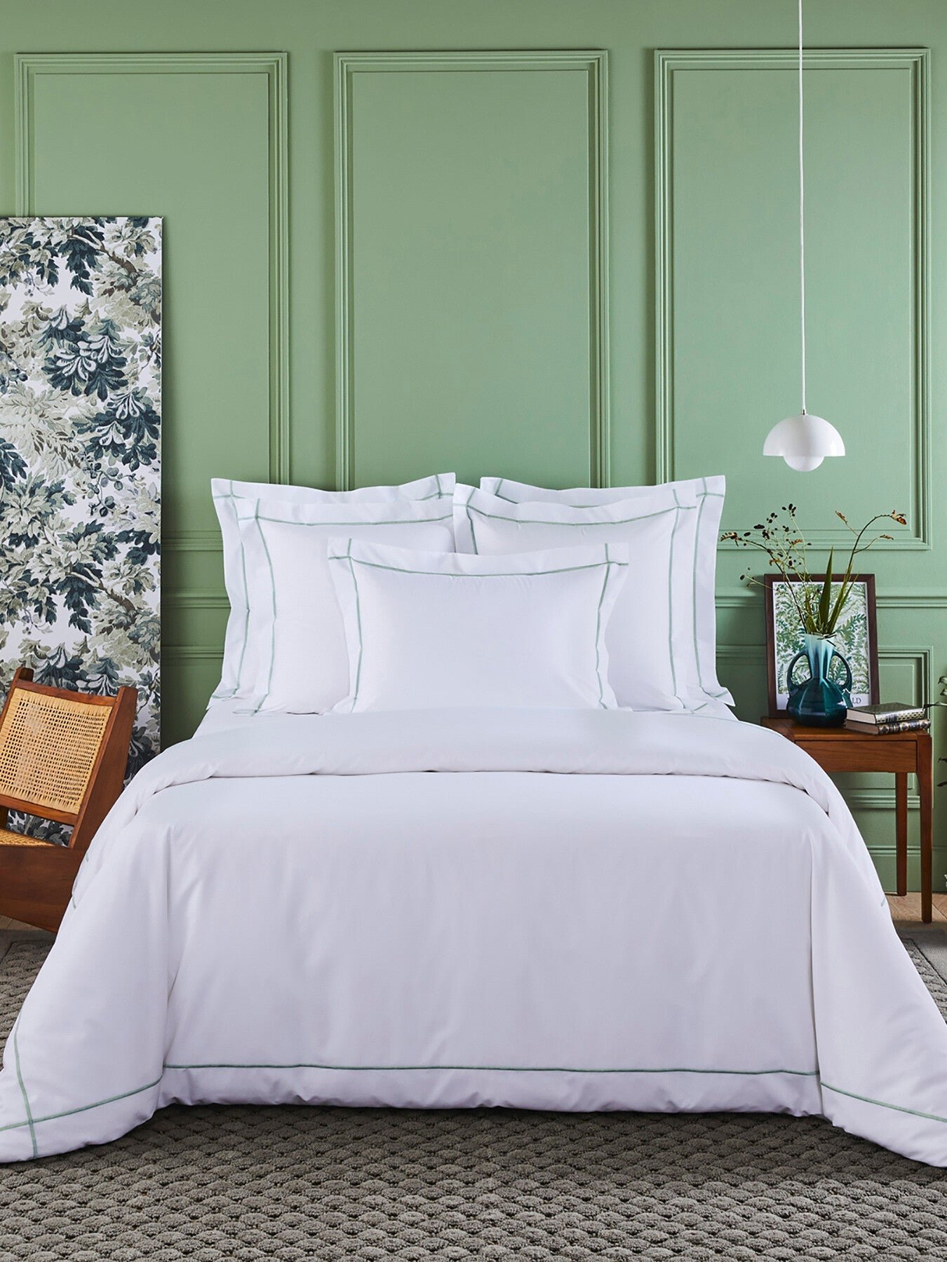 A classic Oxford pillowcase that is easily paired with any bed linen due to its minimalist design. Made entirely from crisp white organic cotton percale, the pillowcase is only gently decorated with linear embroideries in a contrasting bourdon stitch, framing the design. The sateen thread is available in a variety of colours to match your bedroom decor and the bed linen you’re pairing it with.