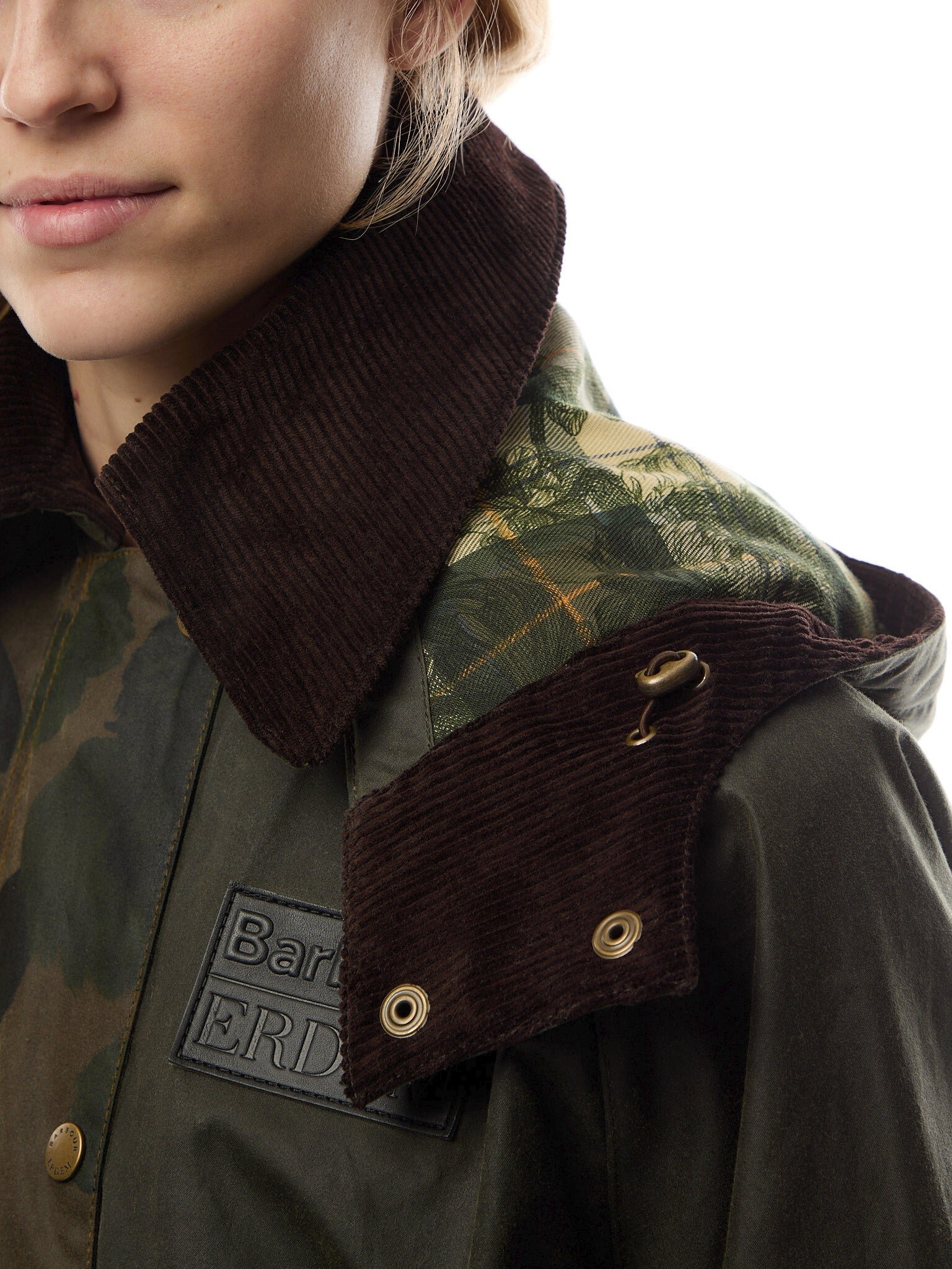 Barbour is renowned for its practicality and functional designs and ERDEM for its delicate and ultra-feminine detailing – the Barbour x ERDEM Datura Waxed Hood is the perfect balance of both. Detailed with a leather dual-branded logo patch and lined with tartan and hand drawn florals, this hood is designed to be paired with the Barbour x ERDEM Beauflower and Constance Waxed Jackets from this collaboration.