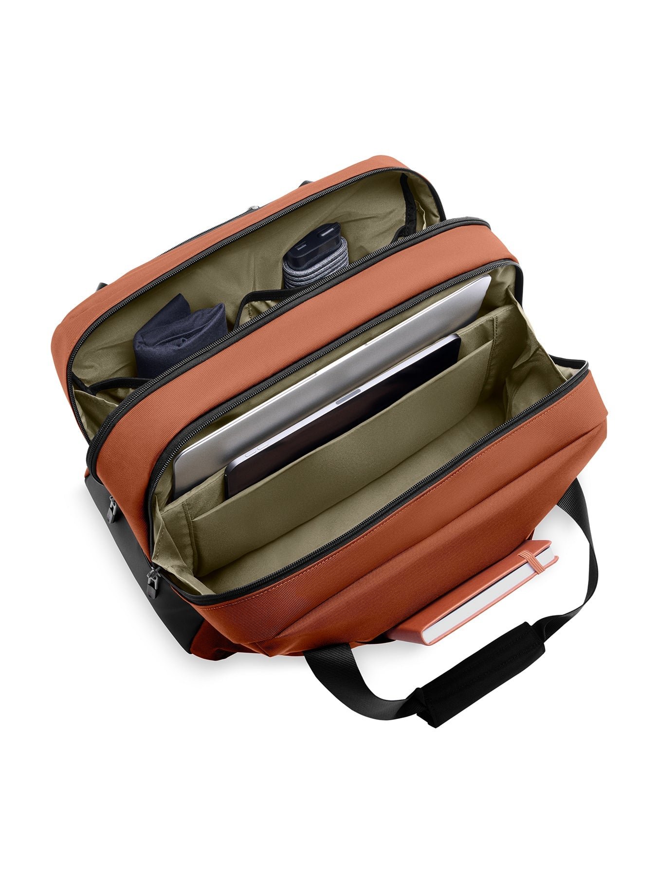 The Cabin Bag in Canyon Brown by Briggs & Riley blends style with practicality. Features padded tech storage, multiple zipped pockets, and a back sleeve for trolley attachment. Crafted from durable nylon to withstand frequent travel.