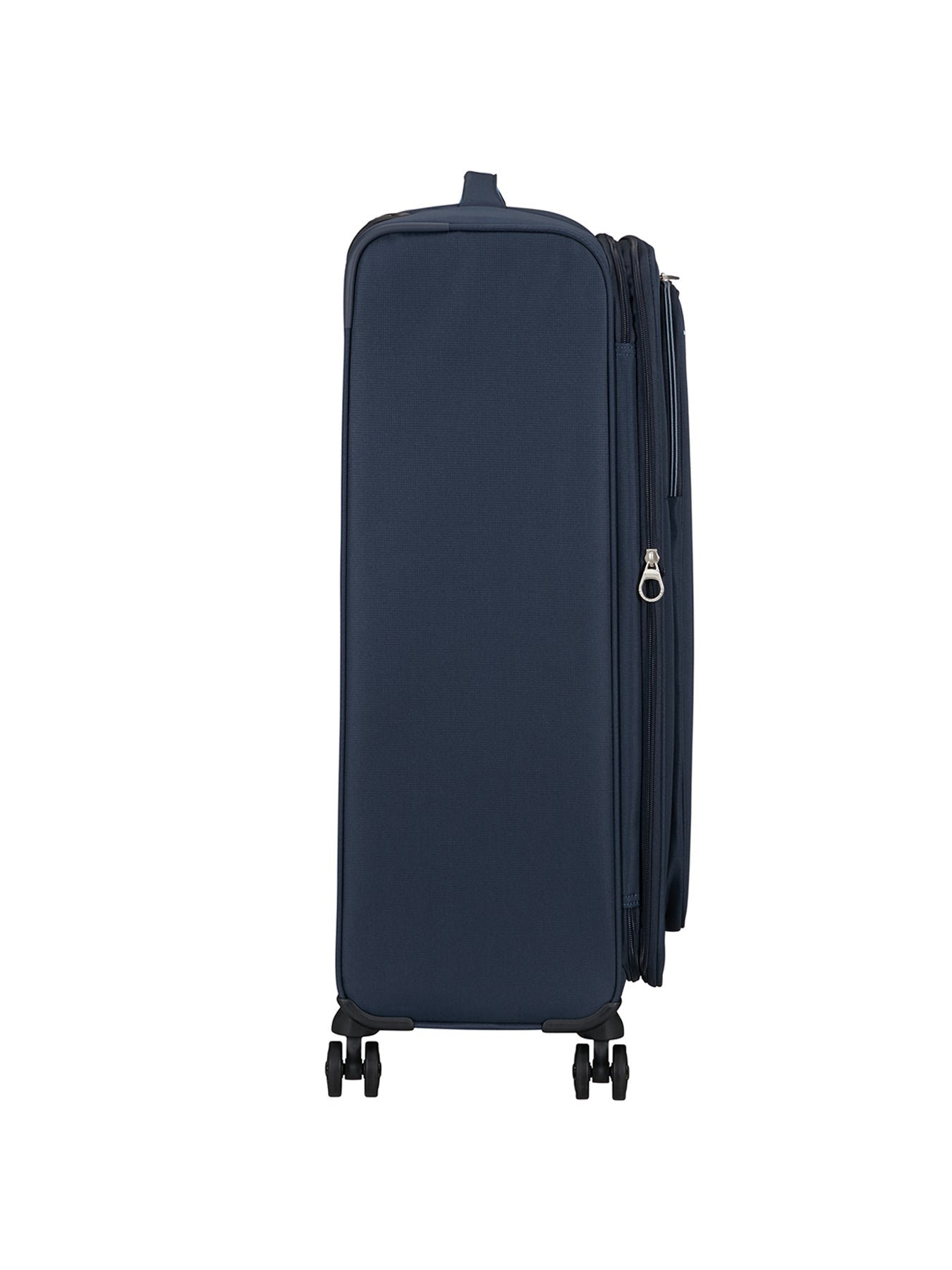 The Cloudrider Large Expandable Spinner Suitcase by American Tourister provides generous capacity for long stays, enhanced with an expandable centre for additional packing space. Quiet spinner wheels and a lightweight build ensure ease of movement. Finished in sky navy, it offers a polished, functional feel for extended travel.