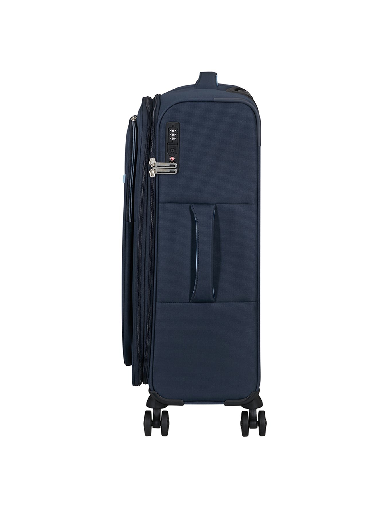 The Cloudrider Medium Expandable Spinner Suitcase by American Tourister offers adaptable packing space with its expansion zip and structured interior compartments. Lightweight construction and smooth spinner wheels make movement effortless on longer trips. Finished in sky navy, it brings a clean, modern tone to extended travel.