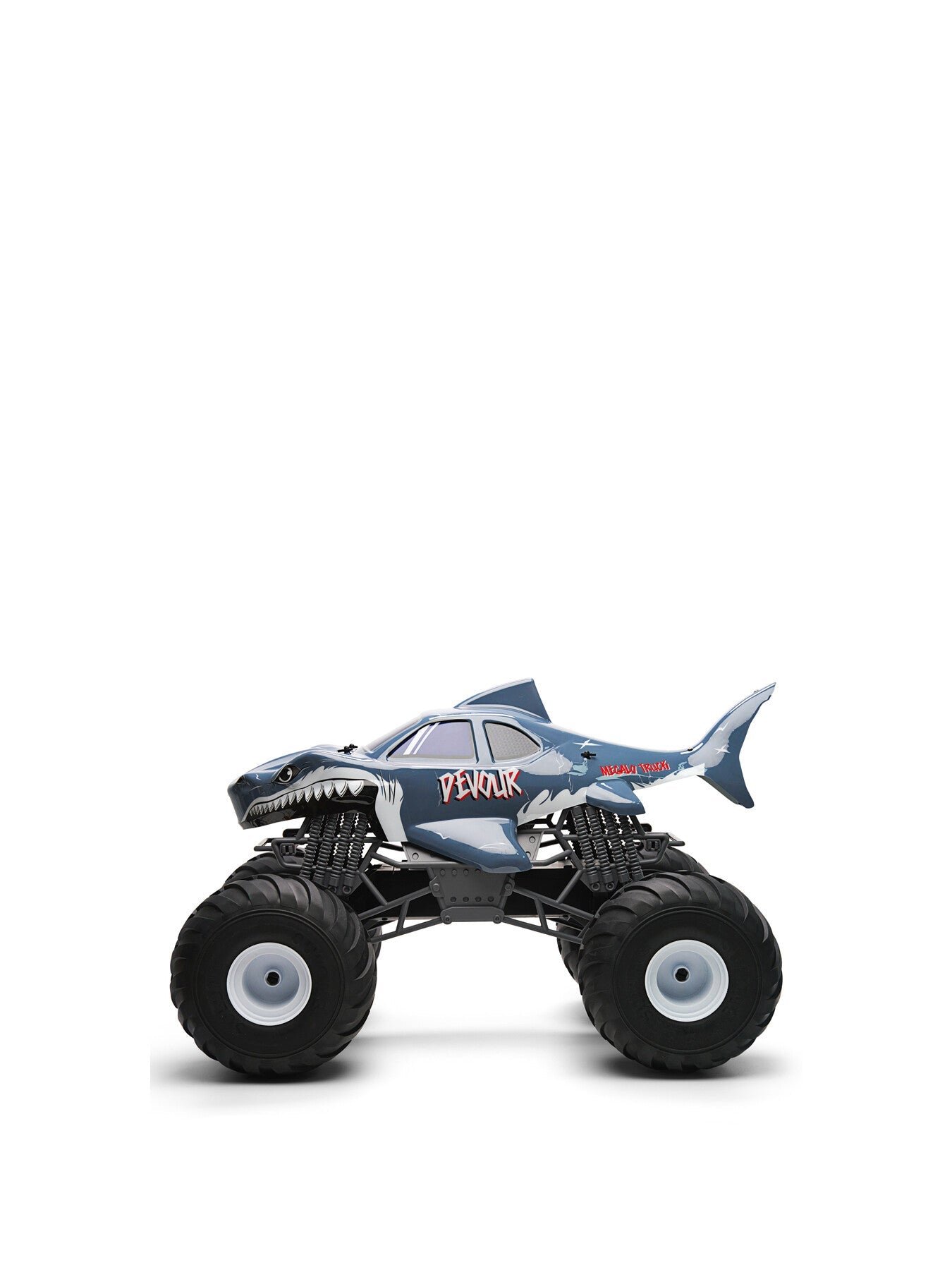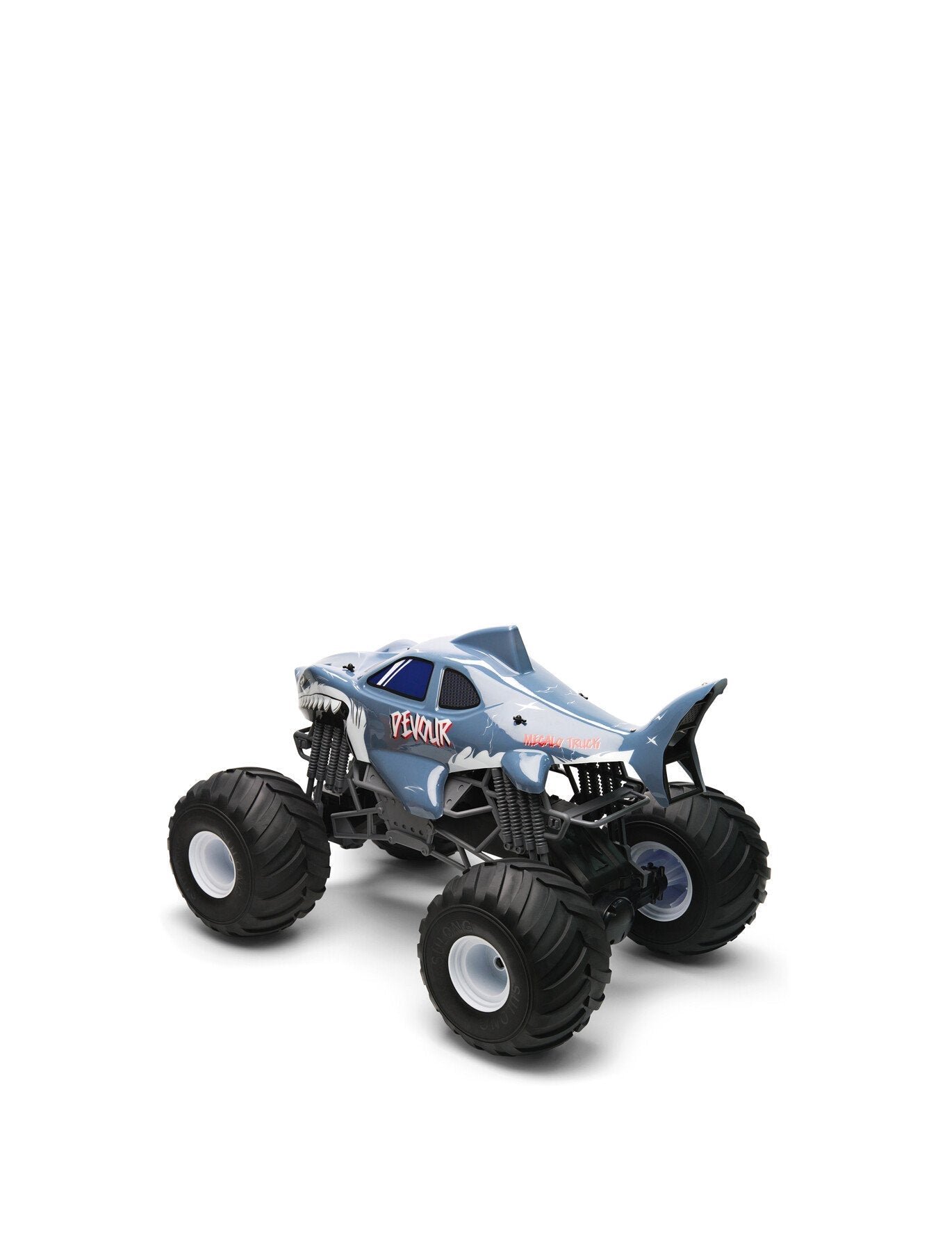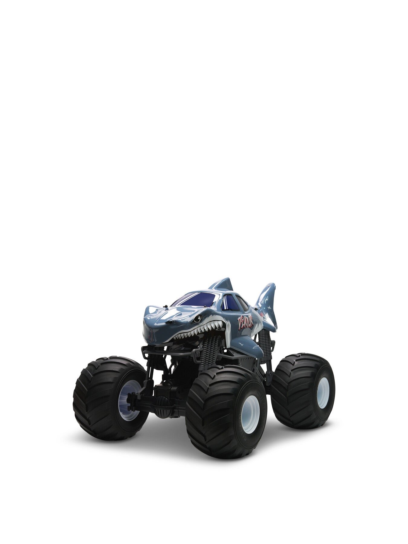 Devour from Rush is a massive, shark-themed 1:6 scale RC monster truck that commands attention with its fierce design, roaring sound effects, and high-performance motor.