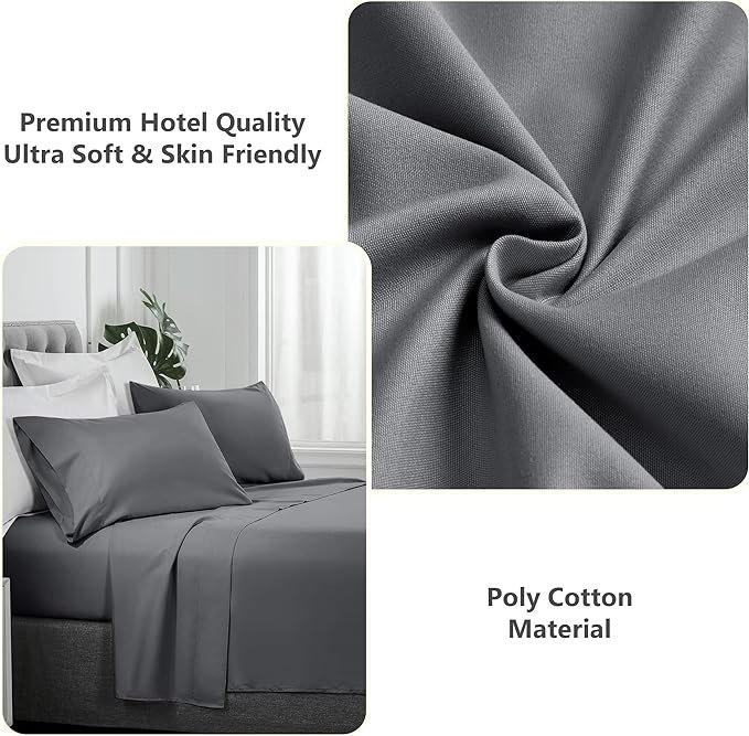 • FEATURES: The solid color flat sheet is made of Polyester Cotton, which ensures to deliver incredible delicate quality. Its high tensile strength makes it tough, long-lasting, and less prone to ripping or tearing. There is no shrinkage and fabric is strong and maintains brightness.