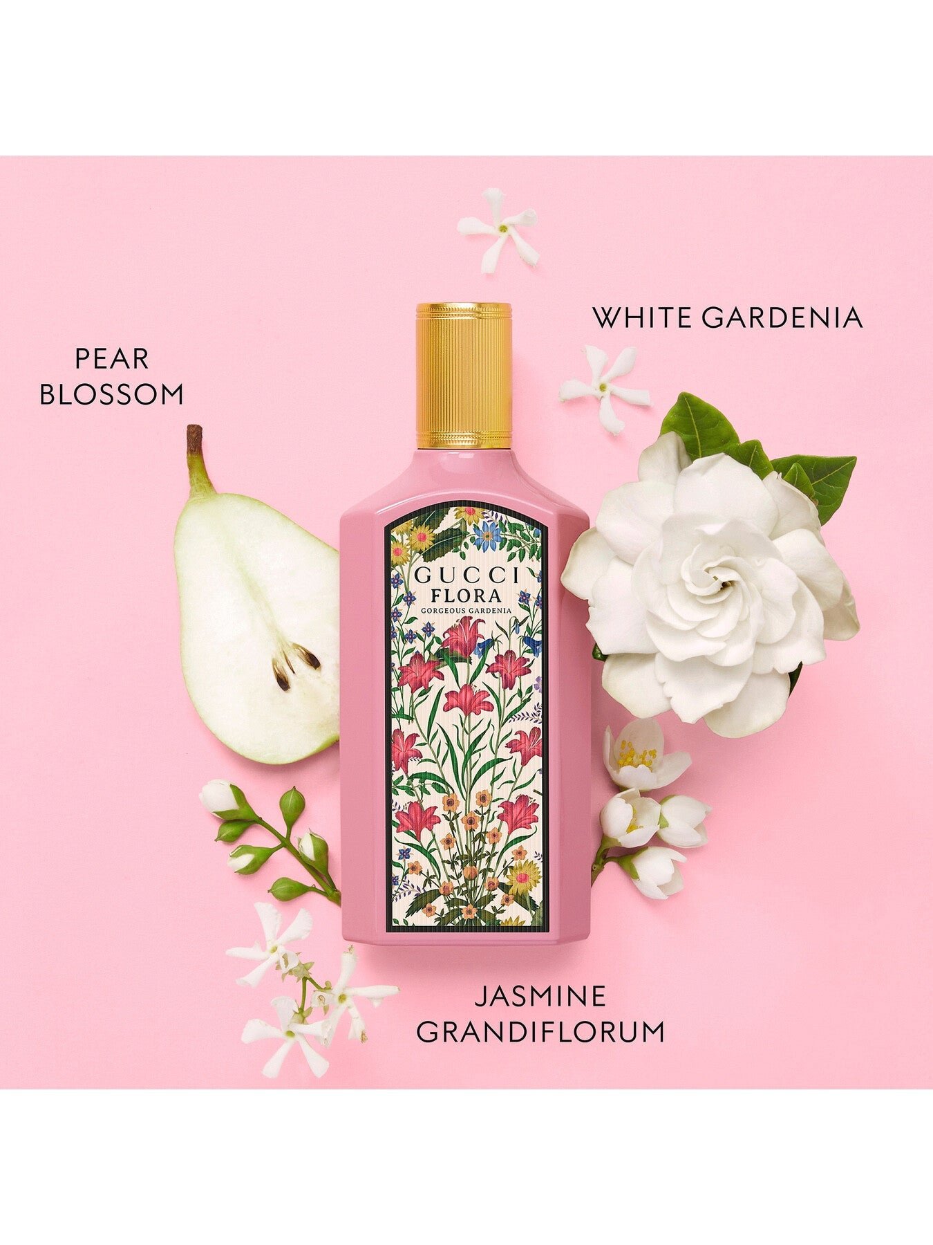 Escape into a joy-fuelled fantasy land with Gucci Flora. Evolving into a new delicious Eau de Parfum, floral yet delicately sweet, Gucci Flora Gorgeous Gardenia relaunches in a new campaign filled with flowers and fluffy animals. A signature floral scent for all free-spirited women full of positive energy.