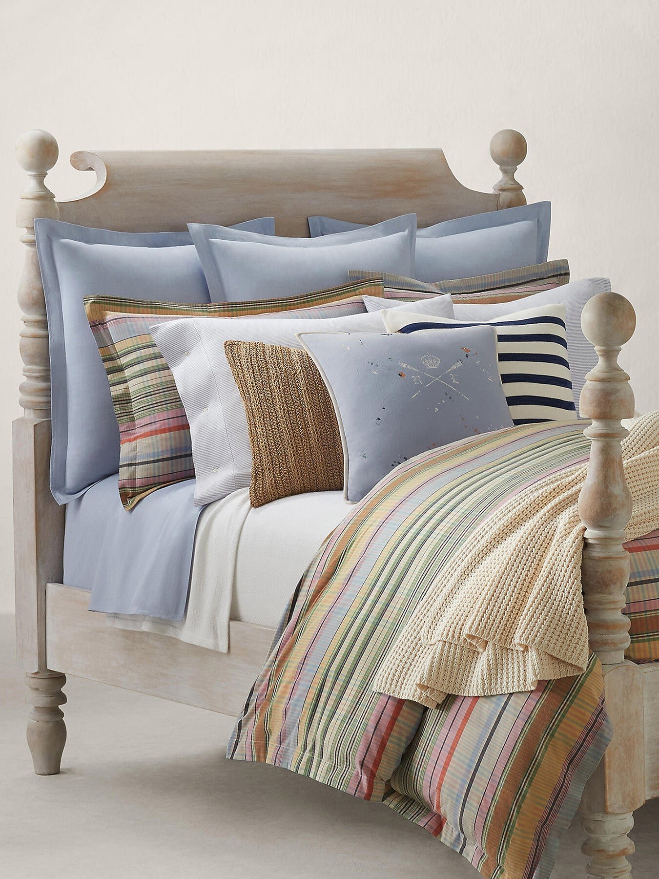 A joyful duvet cover design by Ralph Lauren which will inject a healthy amount of colour into your home. The colour vibrancy of the muddled striped and checked patterns has been purposefully muted to create a summery, sun-bleached effect.