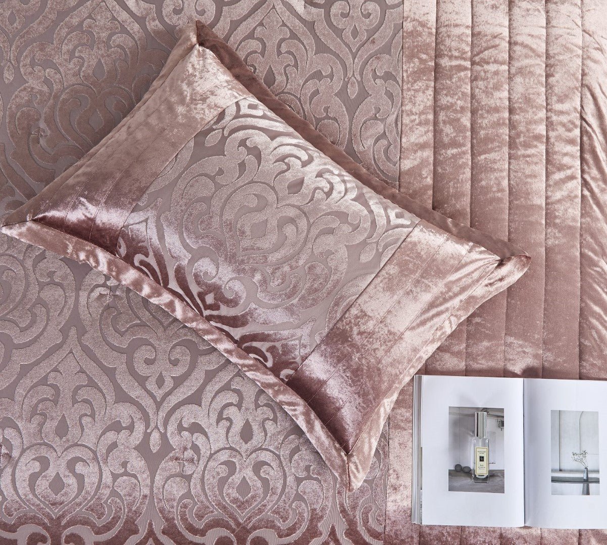 Santiago Crushed Velvet Quilted Bedspread Comforter with Pillow Case