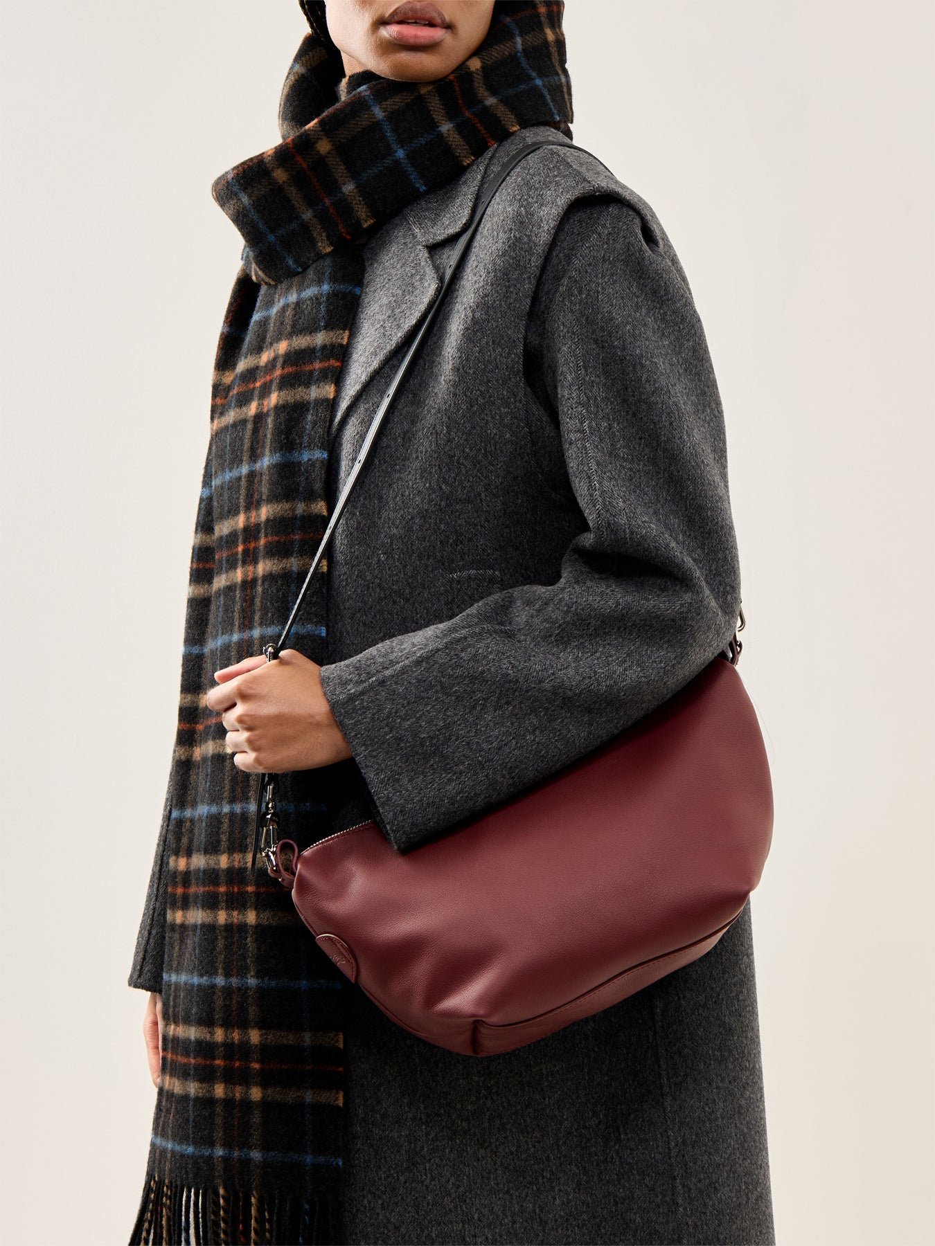The Le Slouchy Small Leather Crossbody Bag by Longchamp brings rich colour to an iconic, softly structured silhouette. Crafted from smooth calfskin leather, the interior accommodates an iPhone 15 Pro Max, card holder, keys and small essentials. Designed for hands-free wear with an adjustable strap. A polished piece that blends heritage design with modern ease.