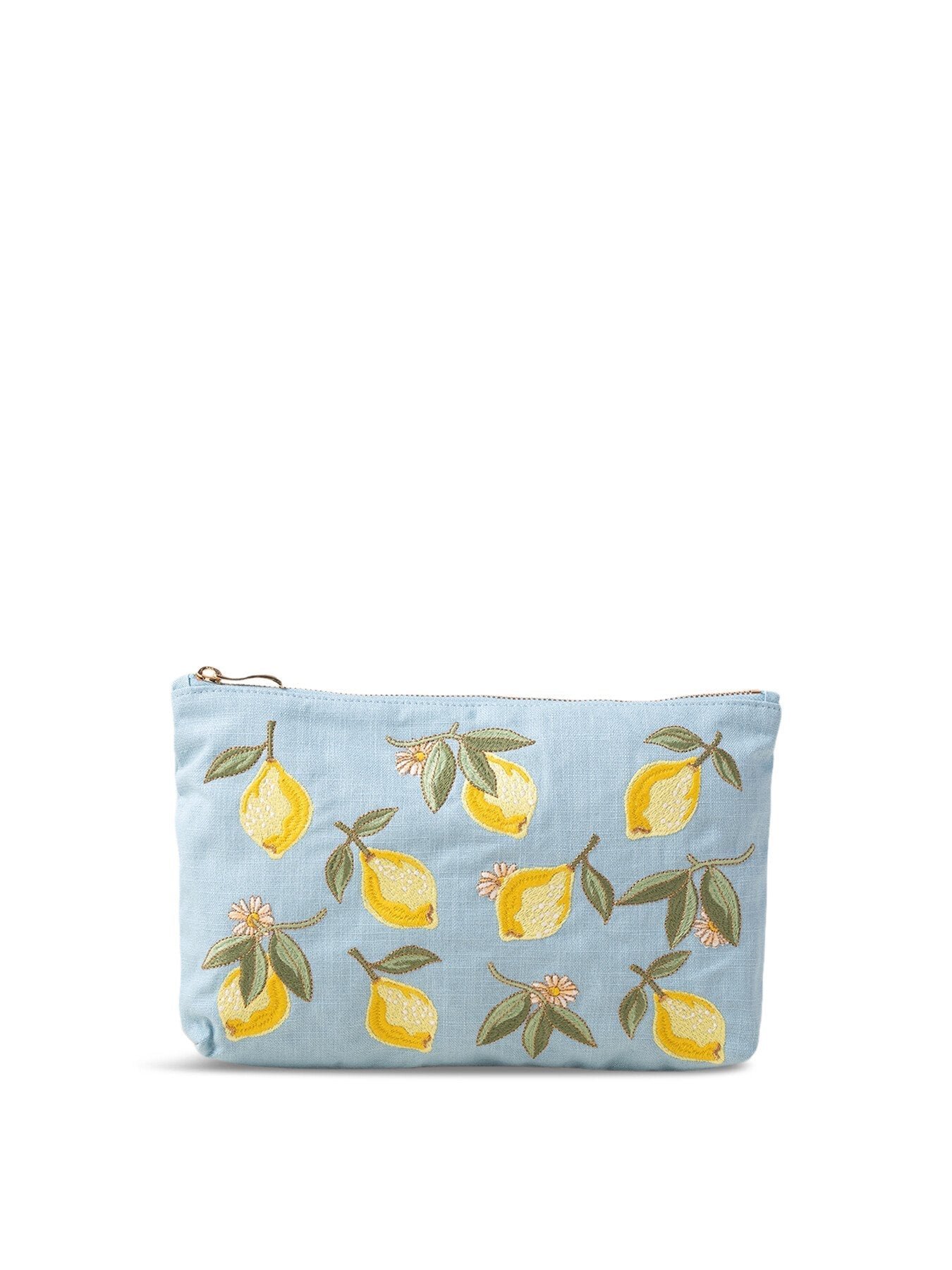 Lemon Blossom French Blue Cotton Everyday Pouch