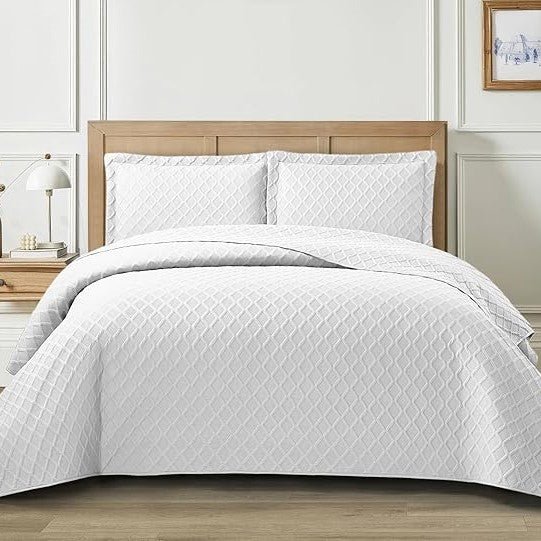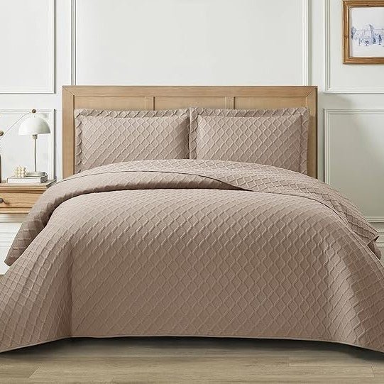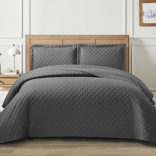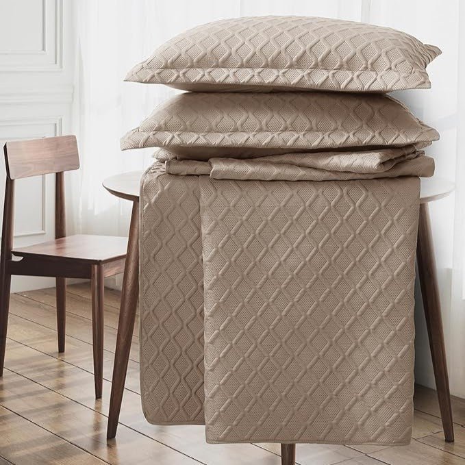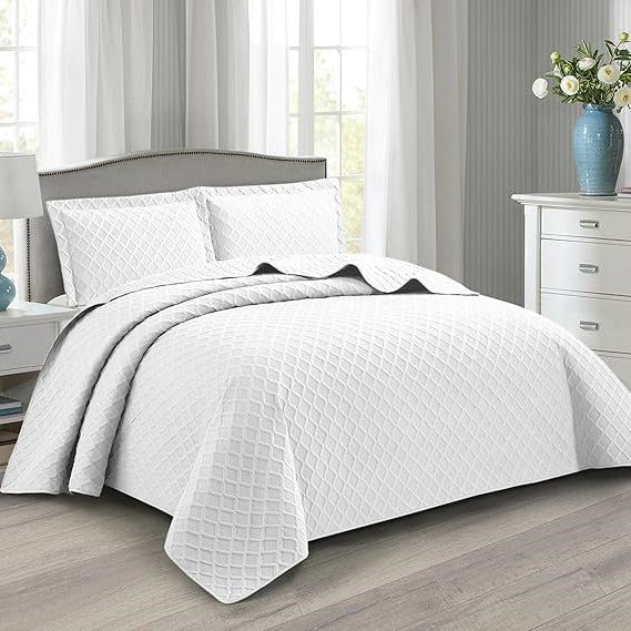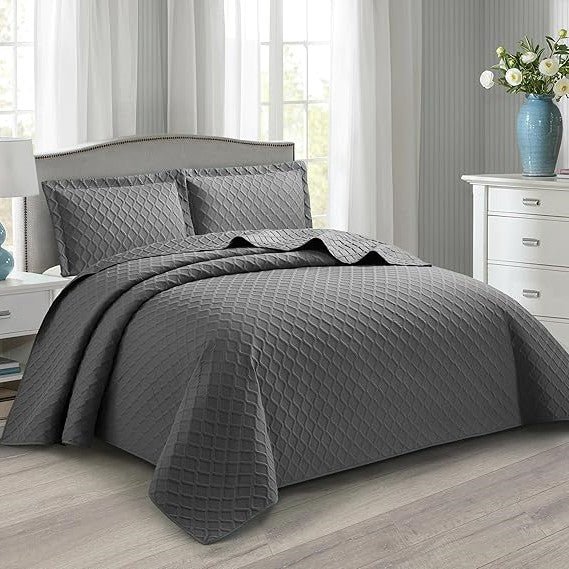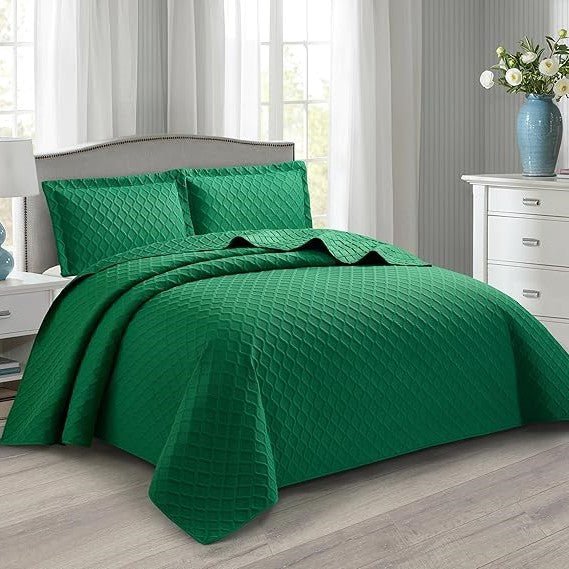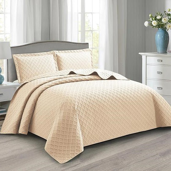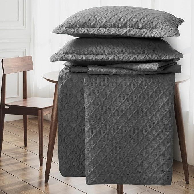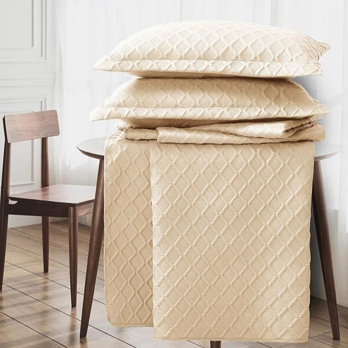 Lightweight Embossed Quilted Diamond Pattern Bedspread Comforter With Pillow Case