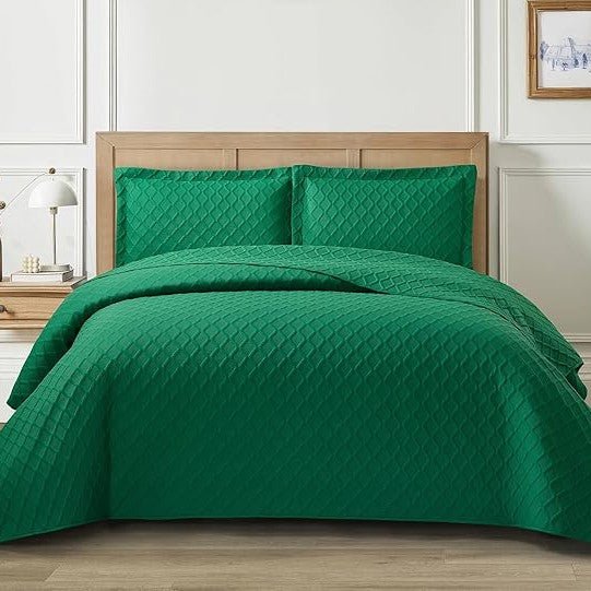 • LIGHTWEIGHT: This light-weight bedspread set is available in multiple color options and sizes. This durable bedspread sets are perfect for family with pets or kids. Soft brushed microfiber that creates lightweight, durable quilted bedspread for use year-round. Tight stitching will hold up through washing and won’t unravel for years to come. Perfect for families with pets and kids.