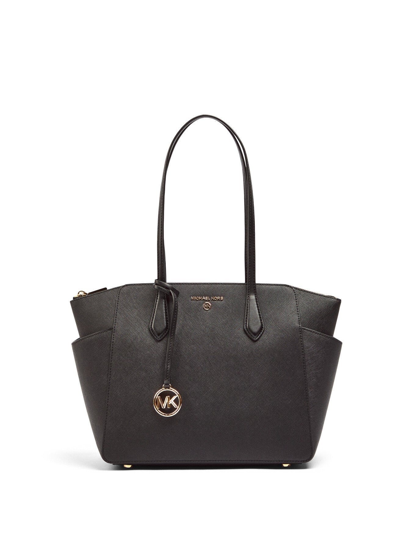The Marilyn carryall is the ultimate tote bag for everyday wear. Embossed with the brand’s iconic ‘MK’ hardware while the structured Saffiano leather silhouette unzips to reveal a spacious interior with dedicated pockets for your daily essentials. Featuring outside slip pockets with slender straps easily slip over your shoulder to ensure on-the-go ease.