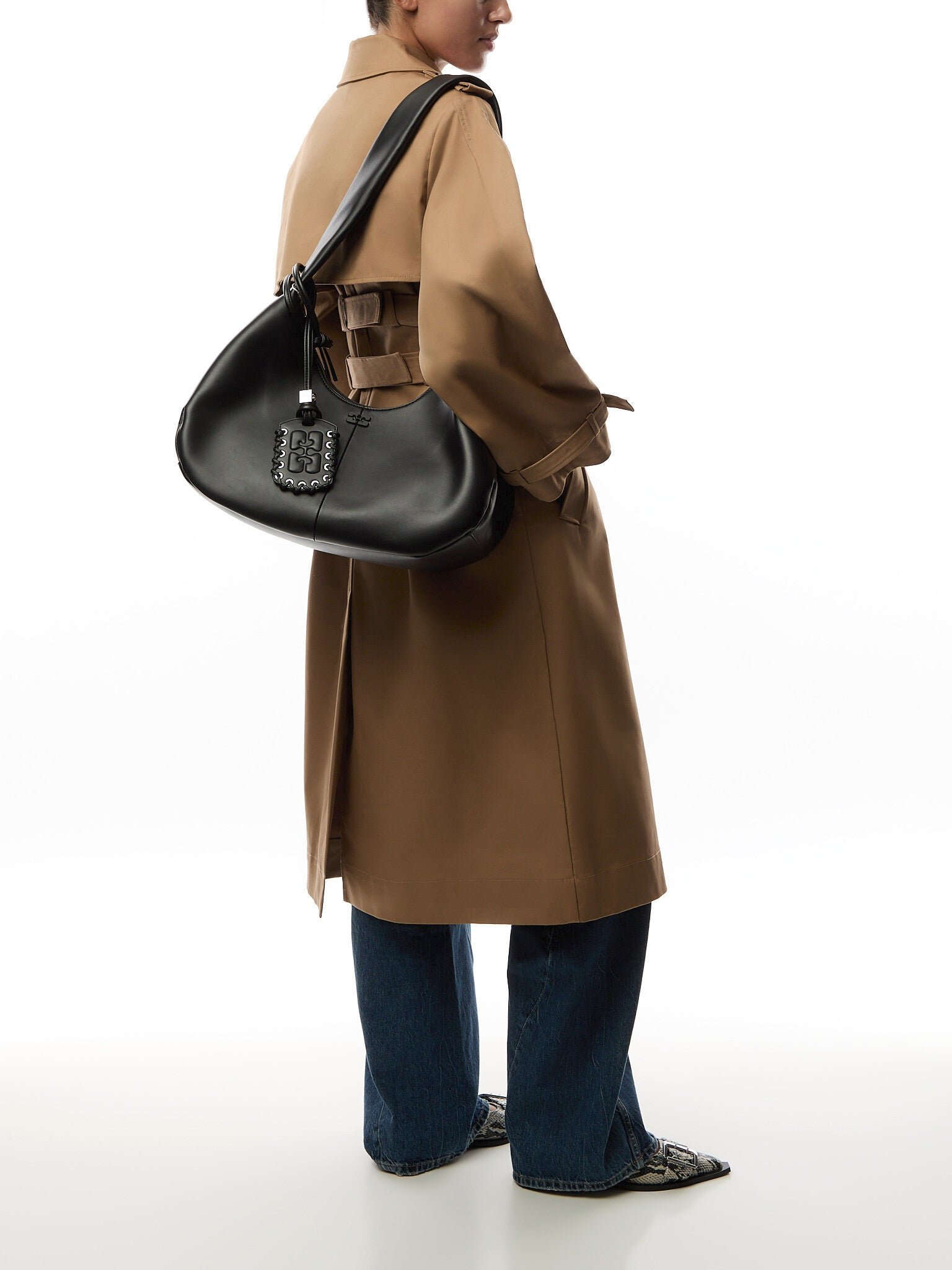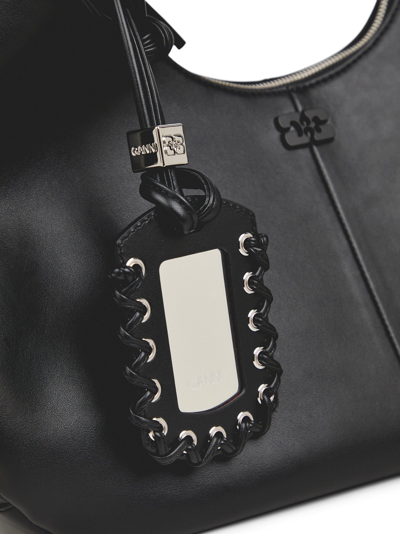The Black Medium Hobo Bag is the silhouette of our Spring/Summer 2025 runway. It is crafted from recycled leather with a super soft, supple finish, featuring corseted lace-up accents, a mirror hangtag, and silver-tone hardware.