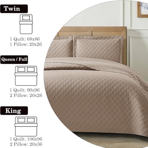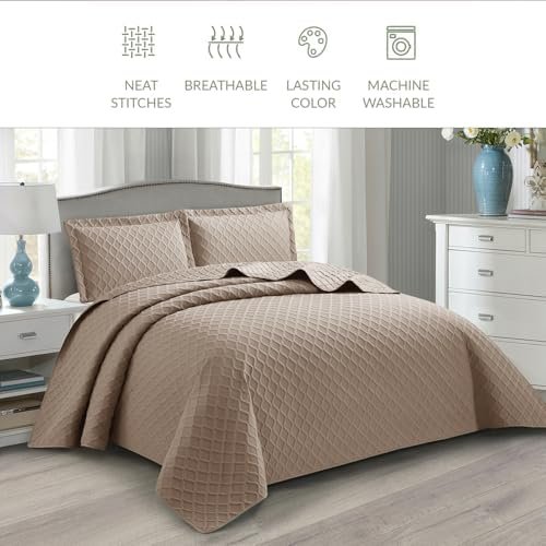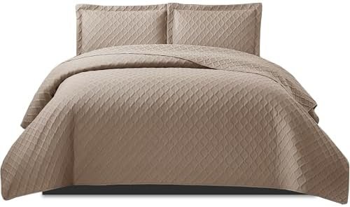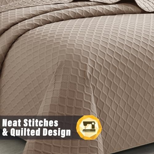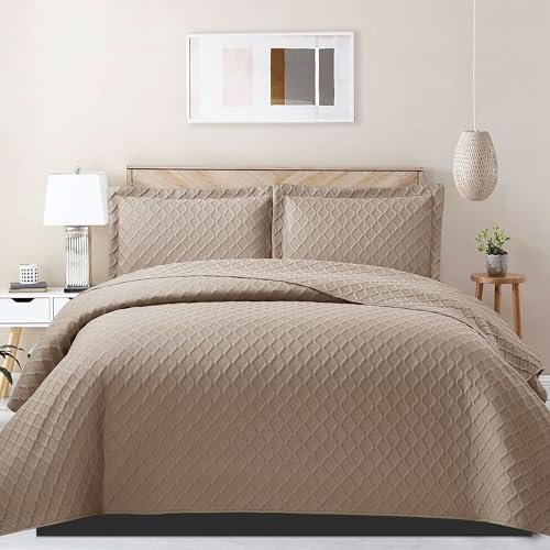 PHP Bedspread Bed Throws for Bedroom Decor – Decorative Embossed Diamond Check Pattern Quilted Fabric Reversible Quilt Bedspreads Coverlets with Pillow Cases (King, Mink) Amazon.co.uk: Home & Kitchen