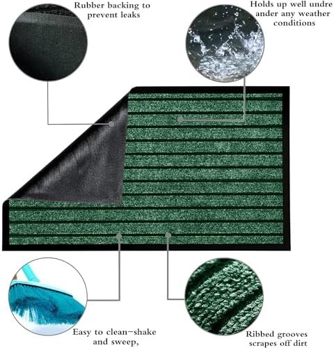 About this item WATERPROOF OUTDOOR MAT: This outdoor mat with durable, premium quality, and all-weather PVC material. Making it have higher tensile strength, higher tear resistance, and fewer smells than other rubber door mats COMPLETE PROTECTION: Protect high traffic interior hardwood or entry door tile floors from scratches, water, sand, dirt, mess, and molding. Create a safe, stable, anti-slip, and water-resistant surface near bathroom sinks and laundry room washers. Give outdoor grills strength and save your patio, or cement pad from splatter stains NON SLIP RUBBER BACKING: Indoor door mat designed with durable and unique PVC RUBER on the bottom help to stay in place and doesn’t slide away, even with active pets. Catch excess dirt and debris from dirty shoes, boots, cleats, and paws, and keep your house clean. EASY TO CLEAN: Simply vacuum the doormat with a hand-held vacuum, sweep with a broom, or shake off the doormat outside. The RUBBER floor mat adds classy decor to your entryway, front door, home, lobby, office, patio, garage, business, barn, living spaces, driveway, and other common areas! PPREMIUM QUALITY ASSURANCE- Our outdoor indoor mat with the low-profile design ensures that doors won’t get stuck. If you have any issues with the rubber door mat contact us today and we’ll gladly make it right.