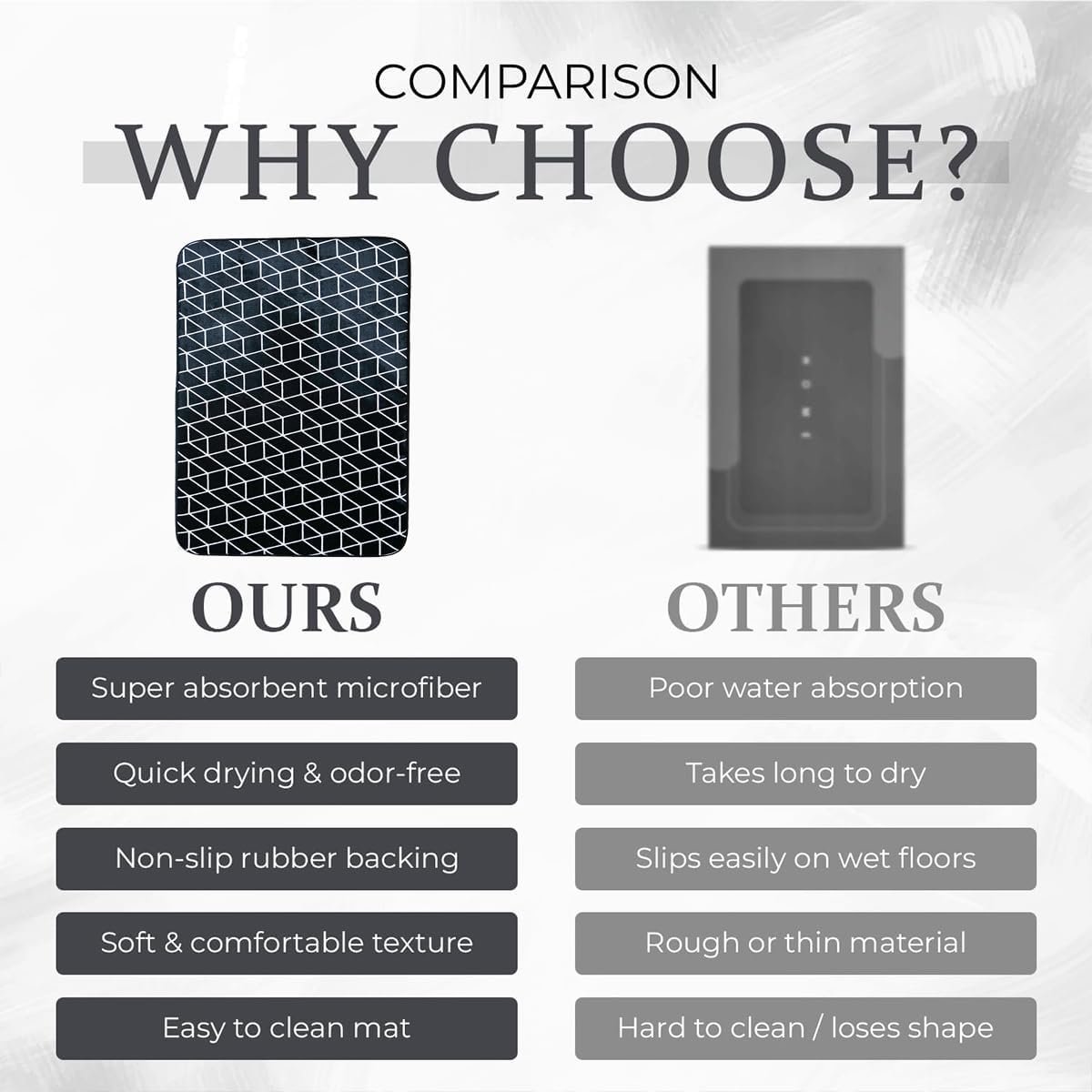 Introducing our premium non-slip bath mat, designed with a robust backing for superior stability and safety. This mat provides a secure footing, ensuring a slip-free experience even in the steamiest of bathrooms. Crafted with high-quality materials, it combines durability with a plush feel underfoot, making every step a delight. Elevate your bathing area with this essential accessory that seamlessly blends functionality and style.
