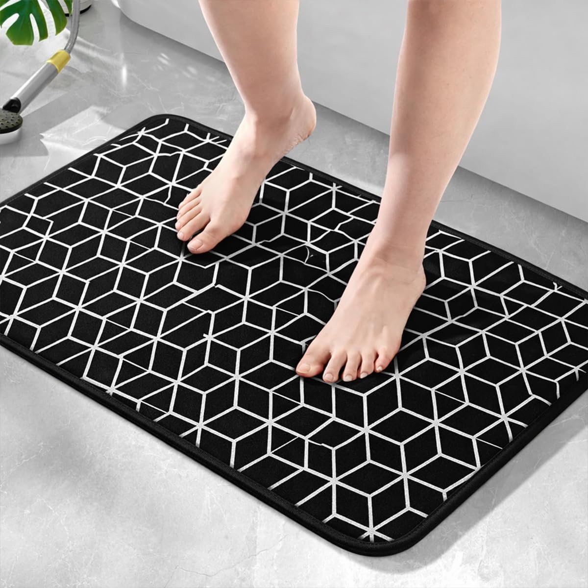 PHP Memory Foam Bath Mat Non Slip, Super Water Absorbent Velvet Bathroom Mat, Machine Washable Bath Rug for Bathroom, Soft on Feet, Quick Dry (Night Cube, 50x80cm) Amazon.co.uk: Home & Kitchen