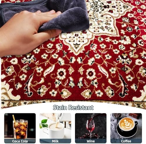About this item Luxurious Soft Pile and Detailed Patterns – The plush pile of this rug offers a warm, inviting feel that’s perfect for creating cozy atmospheres. Its intricate patterns appeal to those who love traditional design elements and classic beauty. Elegant Classic Design – Utilizing a meticulous power-loomed technique, this rug showcases precise patterns and rich colors. It harmoniously complements a variety of decor styles, including contemporary, transitional, and casual spaces, making it a versatile addition to your home. Premium Materials for Long-Lasting Durability and Comfort – This rug is thoughtfully crafted from high-quality polypropylene materials, combining durability with a soft underfoot experience. Its heavy weight enhances stability, providing added safety to reduce the risk of slipping. Robust Edge Finish – The durable edge finish reinforces the rug’s structure and prevents fraying, ensuring that it remains in excellent condition. The distressed finish adds a charming, vintage touch, making it an ideal choice for living rooms, bedrooms, and hallways. Simplified Care and Maintenance – Designed for convenience, this rug is easy to clean and maintain, making it a practical choice for busy households. You can use a carpet cleaner (shampooer) for deep cleaning, but remember to dry the rug immediately and evenly to maintain its quality.