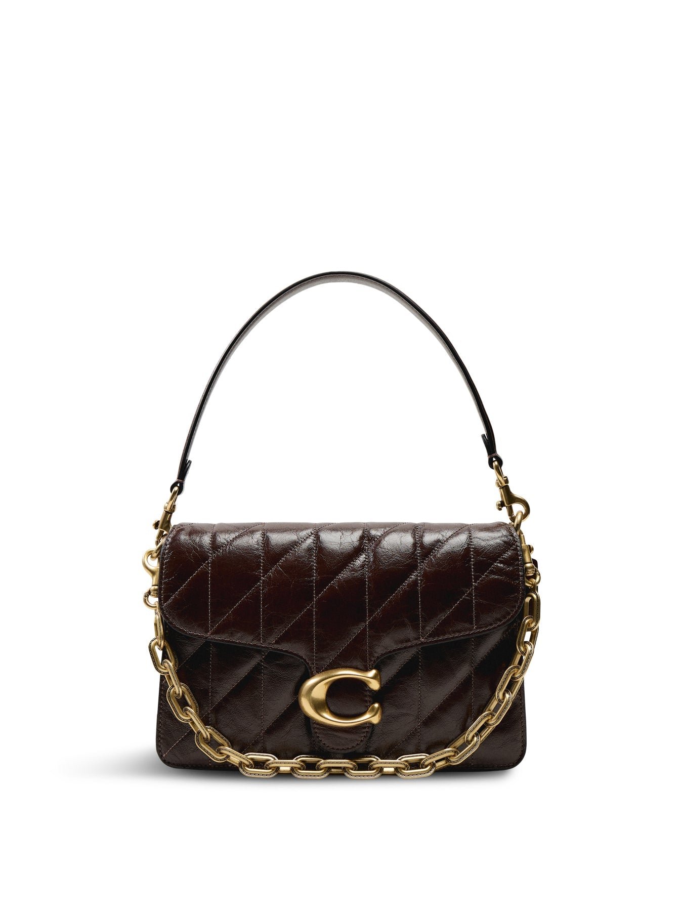 HomeAccessories Quilted Glazed Leather Chain Tabby Shoulder Bag Maple