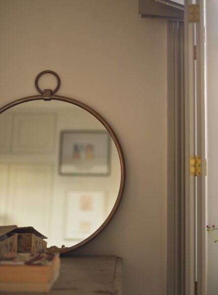 – A circular mirror with a coordinating hook– Crafted from solid brass– Hallways, sitting rooms, bedrooms and bathrooms – it