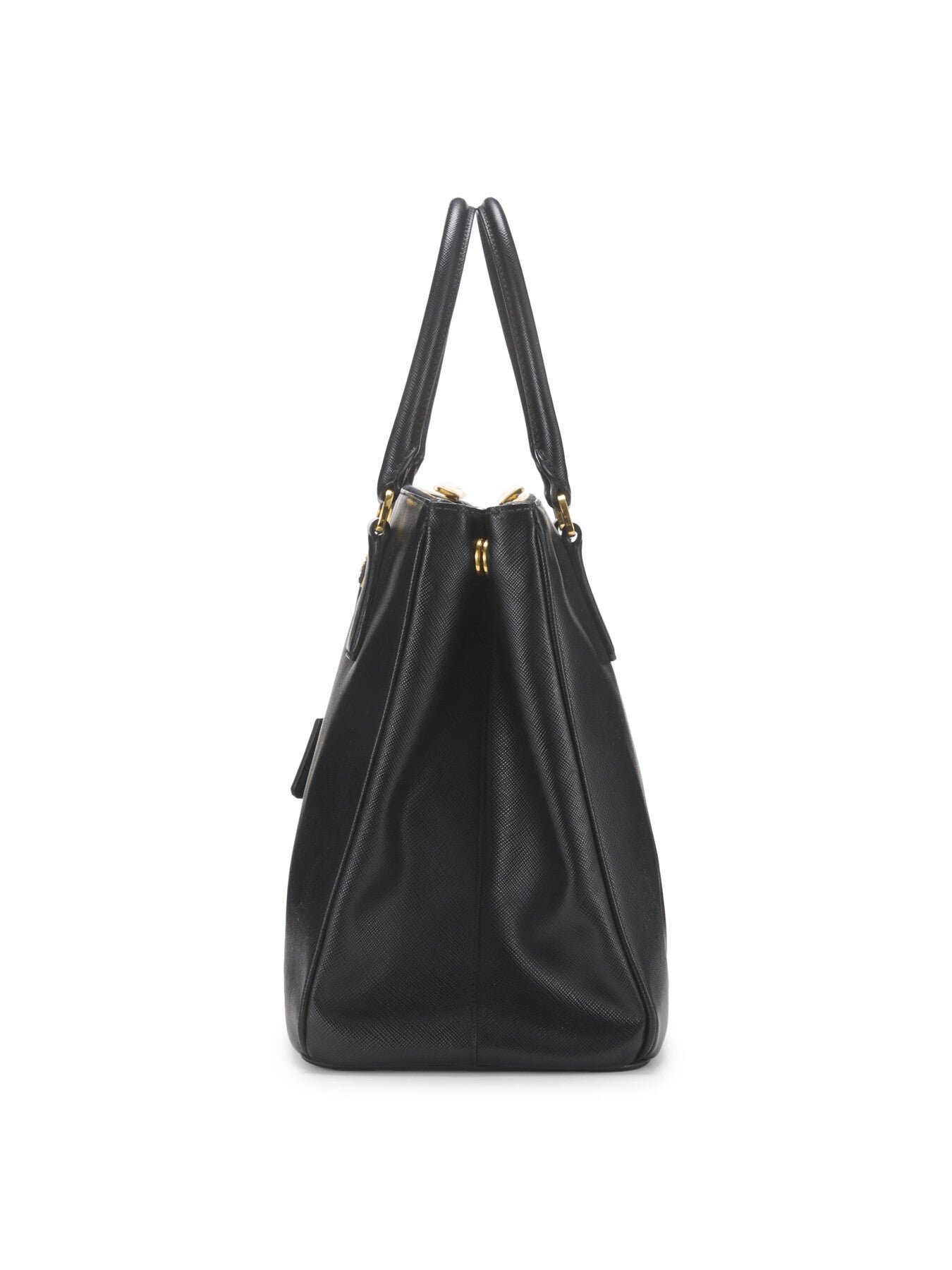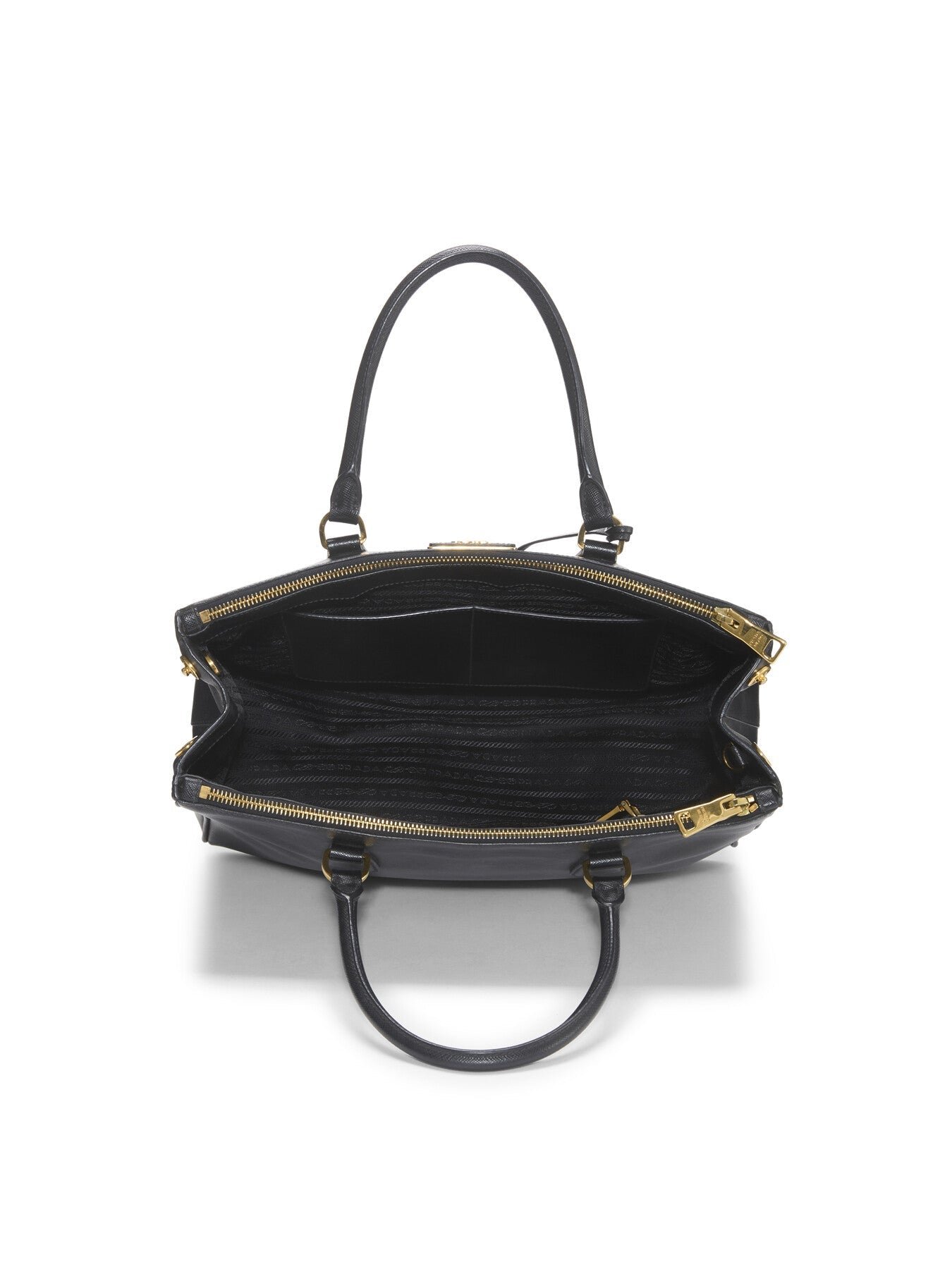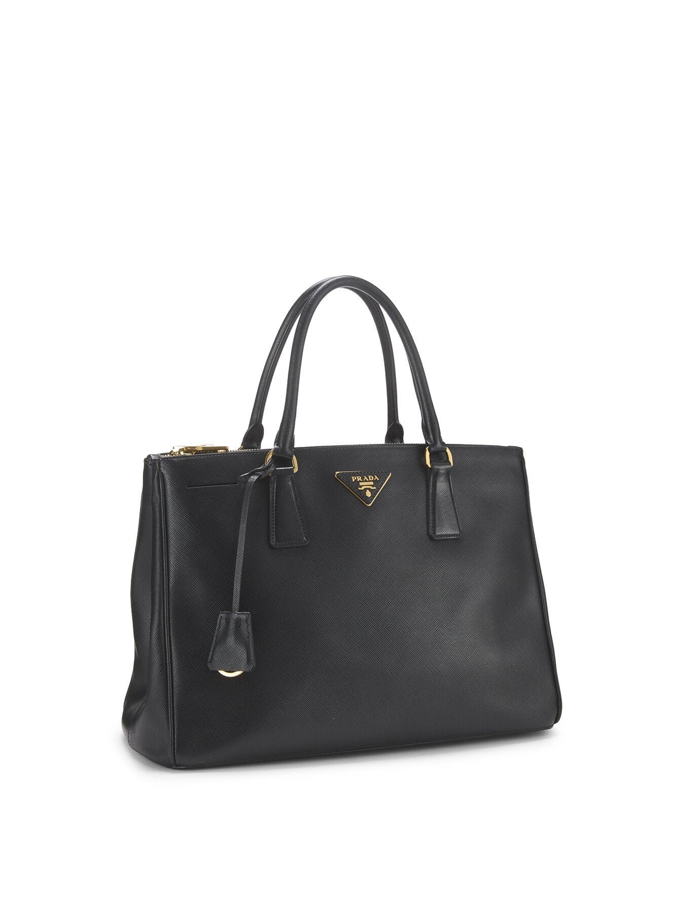 Structured and chic pre-owned Prada medium Executive tote rendered in Saffiano leather, finished with gold-tone hardware and featuring an optional shoulder strap for versatile carry. Saffiano leather is a type of calfskin leather that has a cross-hatched embossed grain mixed with wax to create a satin finish and is built for water resistance.