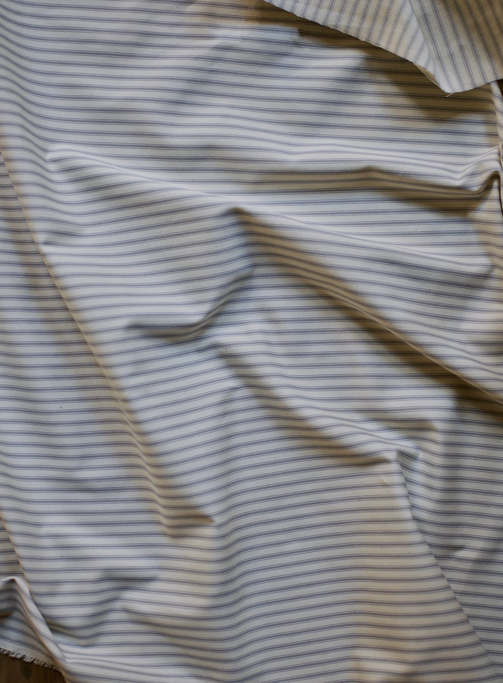 – Removable covers in a grey and white cotton ticking stripe