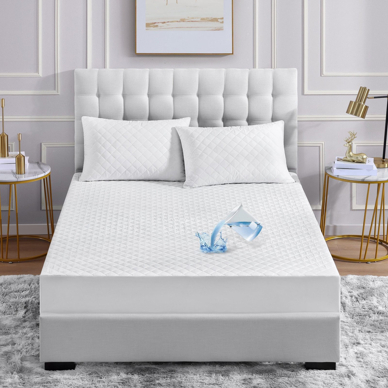 Waterproof Quilted Mattress Protector – Extra Deep 35 Cm Stretch Skirt Mattress Cover Bed Pad Fitted Mattress Topper (White)