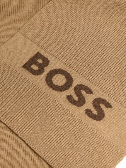 This is a wool and cashmere blend scarf with the logo featuring on the edge of the scarf.