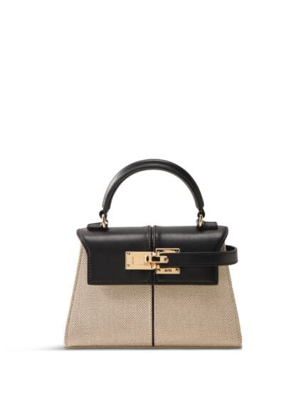 The Elise Top Handle Bag by JW Pei is shaped in canvas with a structured silhouette. A compact style with