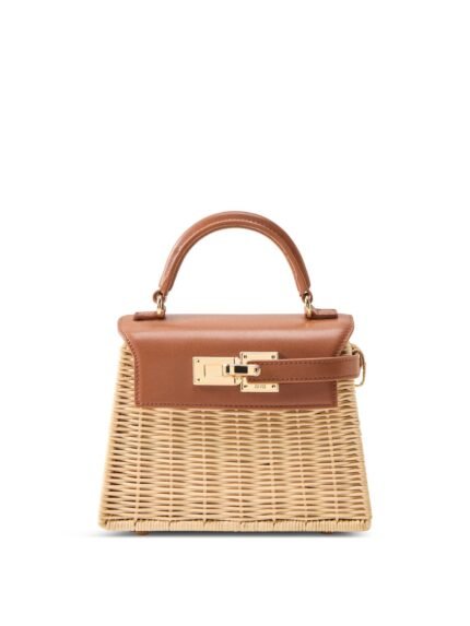 The Elise Rattan Bag by JW Pei is crafted in woven rattan with smooth trim. A natural-inspired design cut for