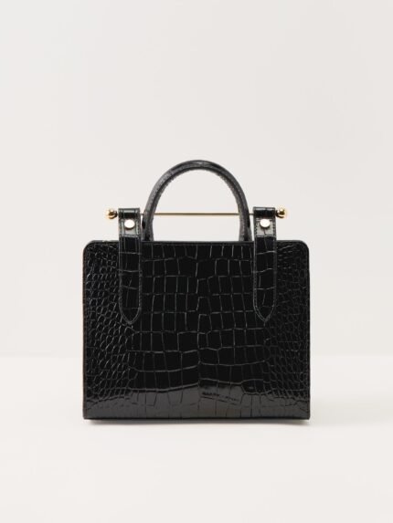 The Embossed Croc Mini Tote by Strathberry offers architectural lines with a bold textured finish. Compact yet statement-making, it elevates